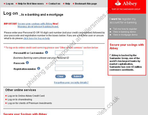 • Email asks you to confirm/update/verify your account data at Abbey Bank by visiting the given link. You will be taken to a spoof website where your details will be captured for the phishers.