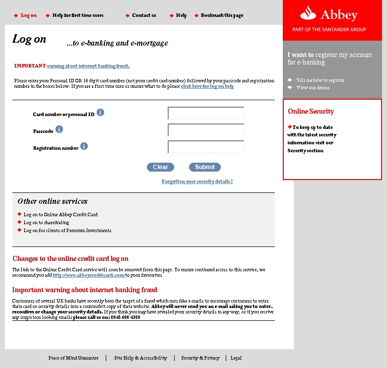 • Abbey National Plc never send their users emails requesting personal details in this way.