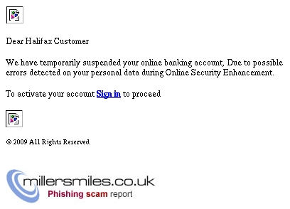 • Halifax Bank Plc never send their users emails requesting personal details in this way.