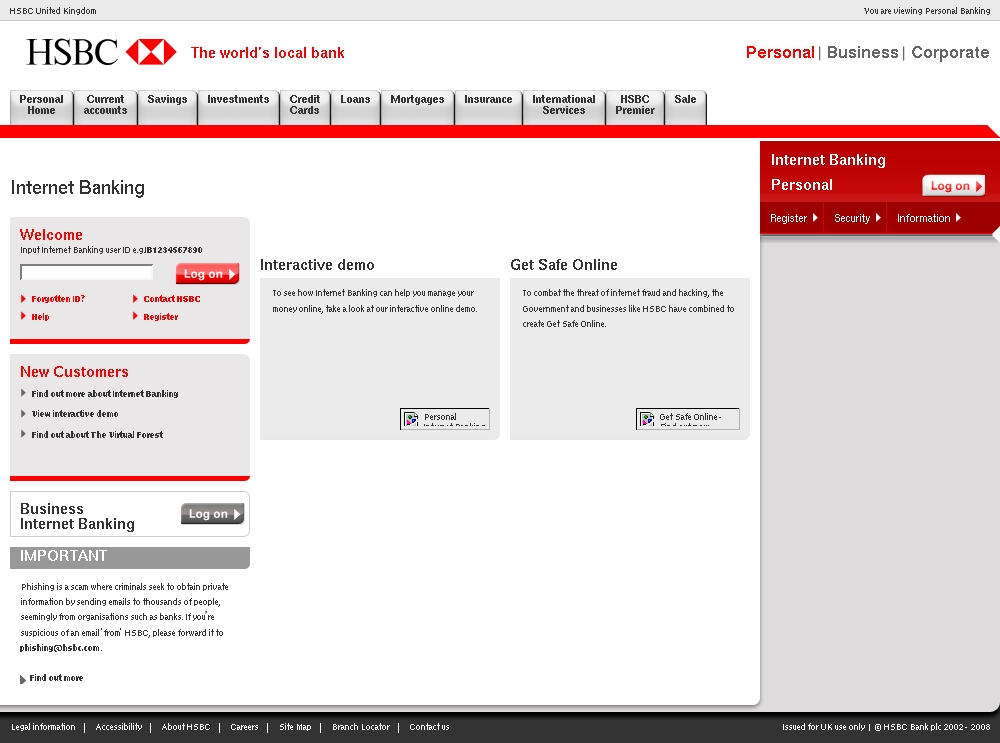 • HSBC Bank Plc never send their users emails requesting personal details in this way.
