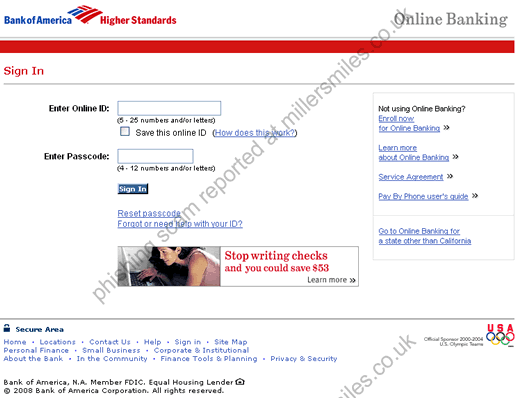 • Email asks you to confirm/update/verify your account data at Bank of America by visiting the given link. You will be taken to a spoof website where your details will be captured for the phishers.