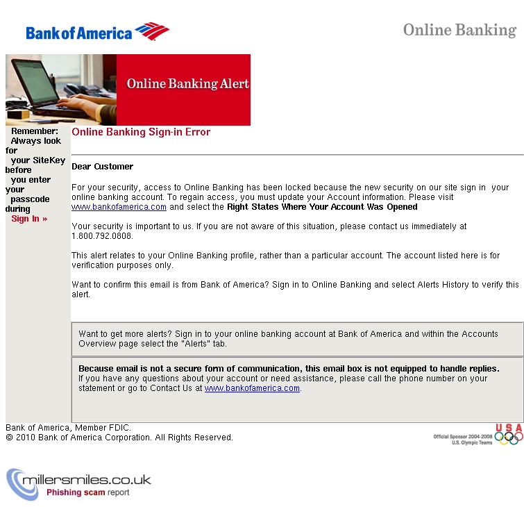 Bank of America Alert: Sign-in to Online Banking Locked |