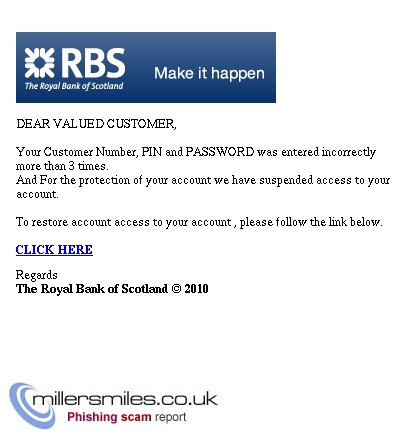 • RBS | The Royal Bank of never send their users emails requesting personal details in this way.