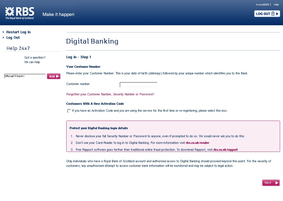 • Email asks you to confirm/update/verify your account data at RBS | The Royal Bank of by visiting the given link. You will be taken to a spoof website where your details will be captured for the phishers.