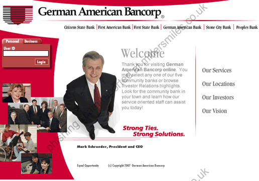 • The REAL URL of the spoof website looks nothing like the actual German American Bancorp URL.