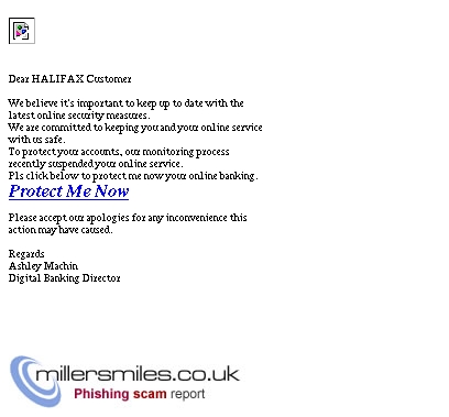 • HALIFAX BANK PLC never send their users emails requesting personal details in this way.