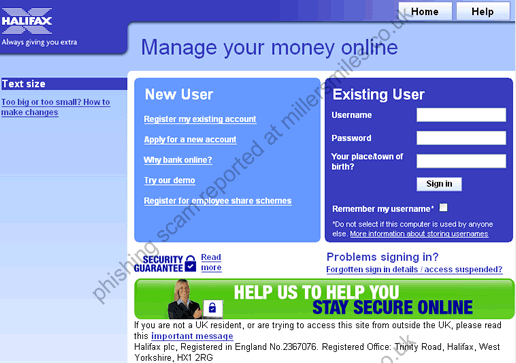 "Halifax persistently keeps vigilant watch over recent acheivements in strife against network piracy and continuously implements preventive works aimed at maximal protection of our clients personal data against security violation by fraudsters."