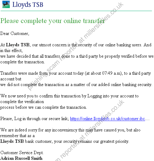 Lloyds TSB Online Banking < do-not-reply@lloyds.co.uk >  |