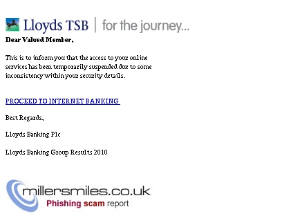 • Lloyds Banking Group never send their users emails requesting personal details in this way.