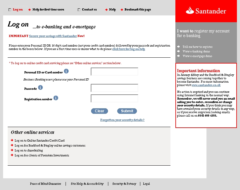 • Abbey National Plc. never send their users emails requesting personal details in this way.
