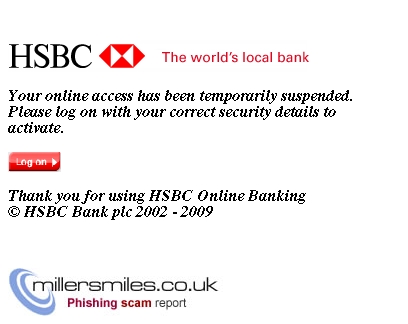 • Email asks you to confirm/update/verify your account data at HSBC Bank by visiting the given link. You will be taken to a spoof website where your details will be captured for the phishers.