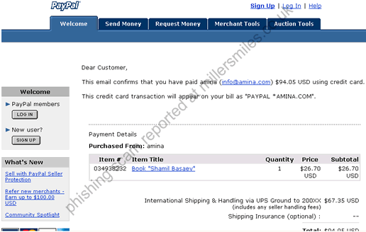 "This email confirms that you have paid amina (info@amina.com) $94.05 USD using credit card."