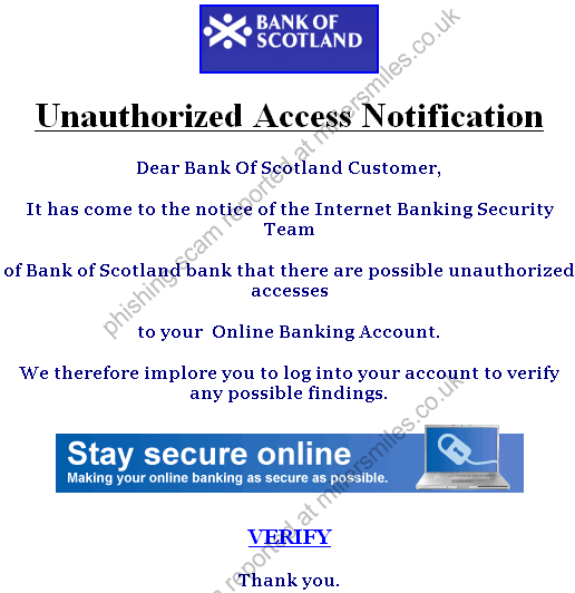 • Bank of Scotland never send their users emails requesting personal details in this way.