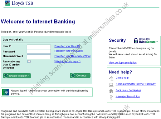 • LloydsTSB Bank never send their users emails requesting personal details in this way.