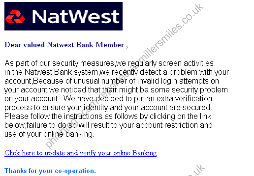 - Natwest Bank never send their users emails requesting personal details in this way.
