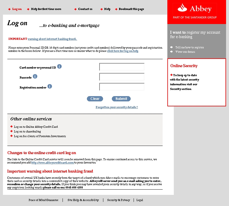 Your access to our Abbey Internet Banking has