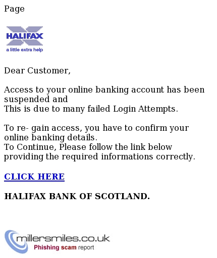 • HALIFAX BANK OF SCOTLAND. never send their users emails requesting personal details in this way.