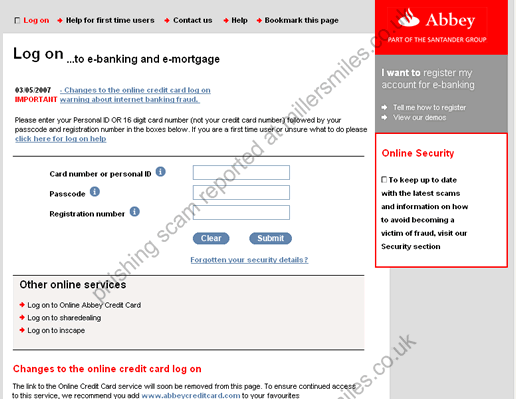 • Email asks you to confirm/update/verify your account data at Abbey by visiting the given link. You will be taken to a spoof website where your details will be captured for the phishers.