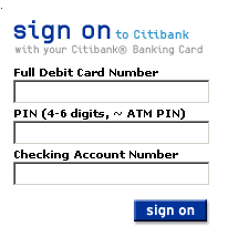 The Spoof Webpage (pops up in front of real Citi webpage)...